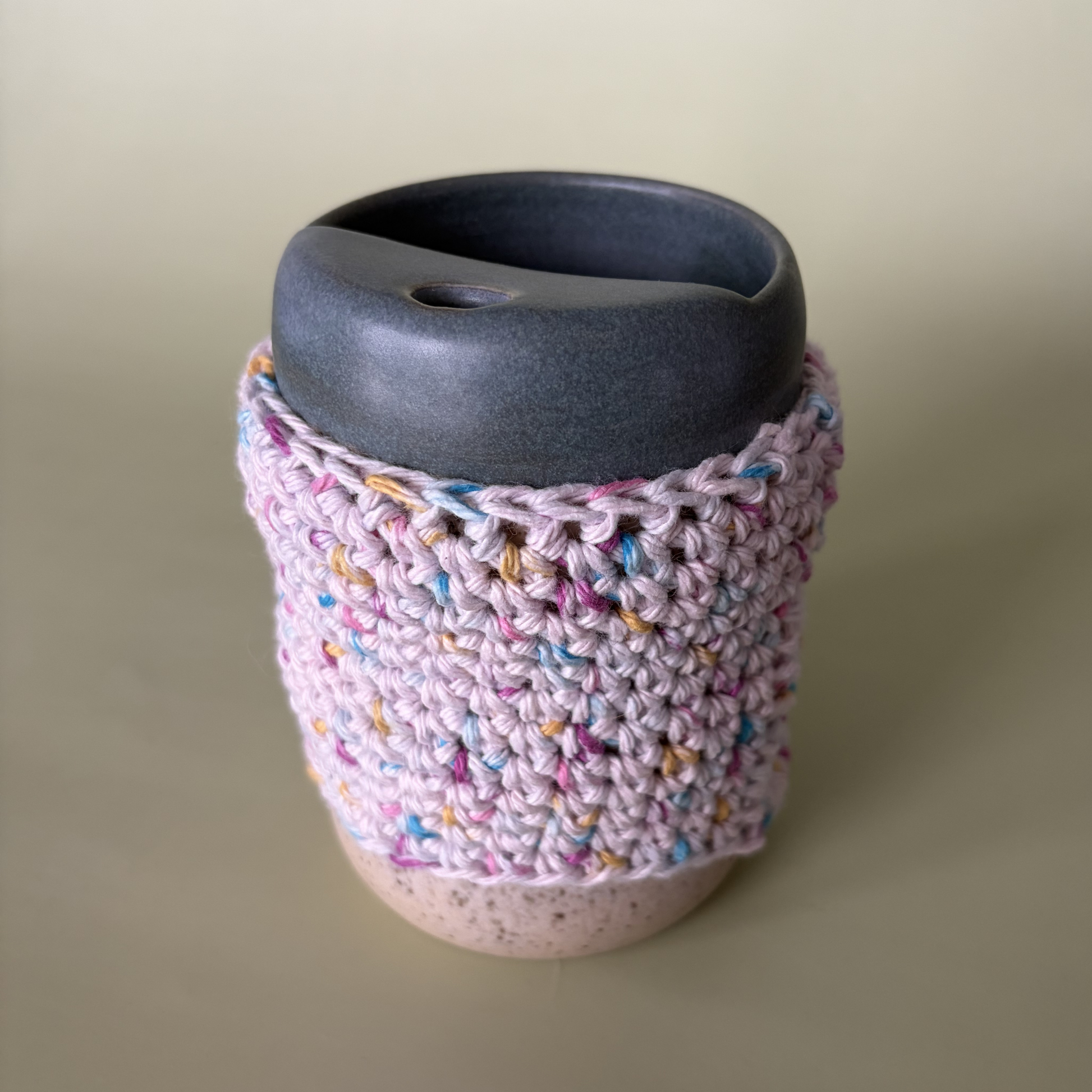 The perfect cozy layer for your to-go cup. Slip it on to keep your hands comfortable while you enjoy your favorite hot drinks. Crocheted by hand for a soft, snug fit. Every sleeve is handmade by Taylor Wilson.