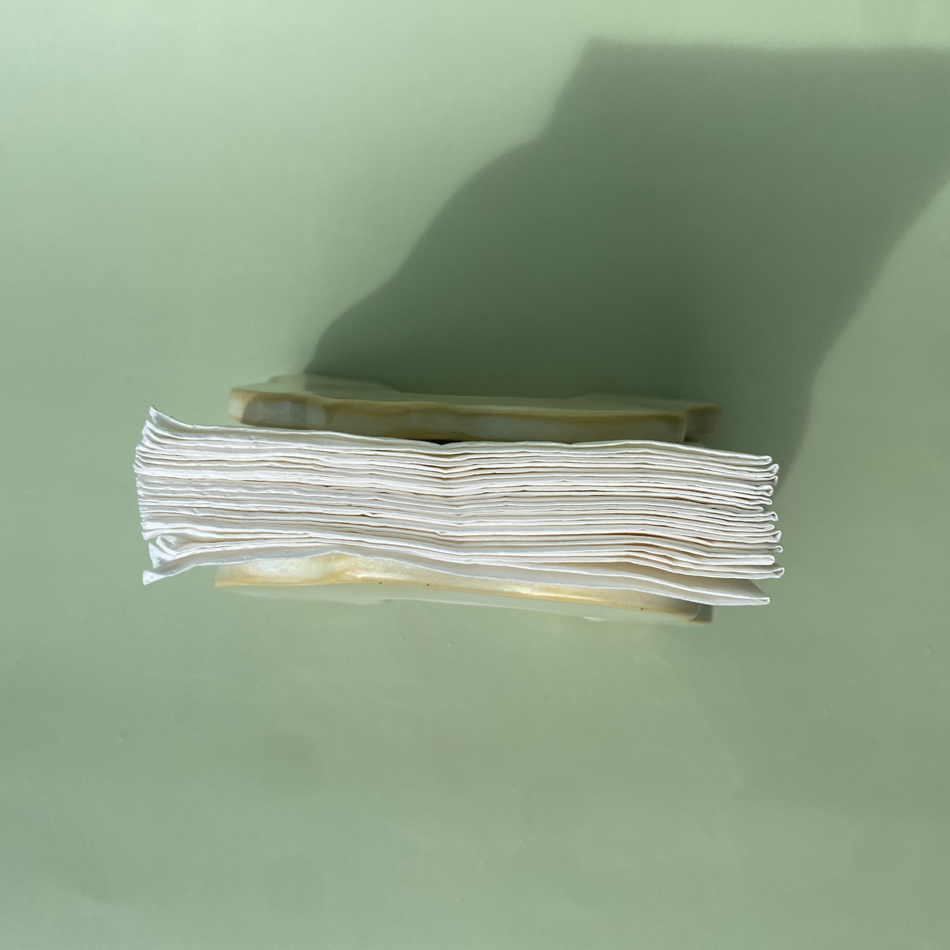 Bring charm to your meals with this unique handbuilt napkin holder. Cocktail napkins are shown in the images. Standard size fits nice as well. Made with stoneware clay and the bottom of piece is sanded for a smooth finish. Hand washing is strongly recommended.